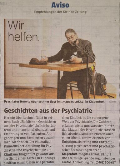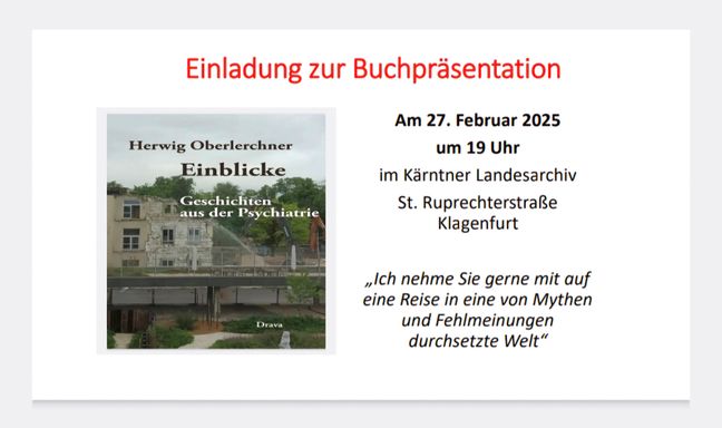 Lesungen und Buchpräsentationen - Einblicke - Geschichten aus der Psychiatrie